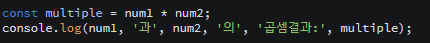 console.log(num1, '과', num2, '의', '곱셈결과:', multiple);