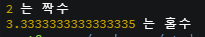 console.log(divide2, '는', (divide2 % 2 === 0) ? '짝수' : '홀수');